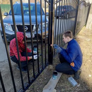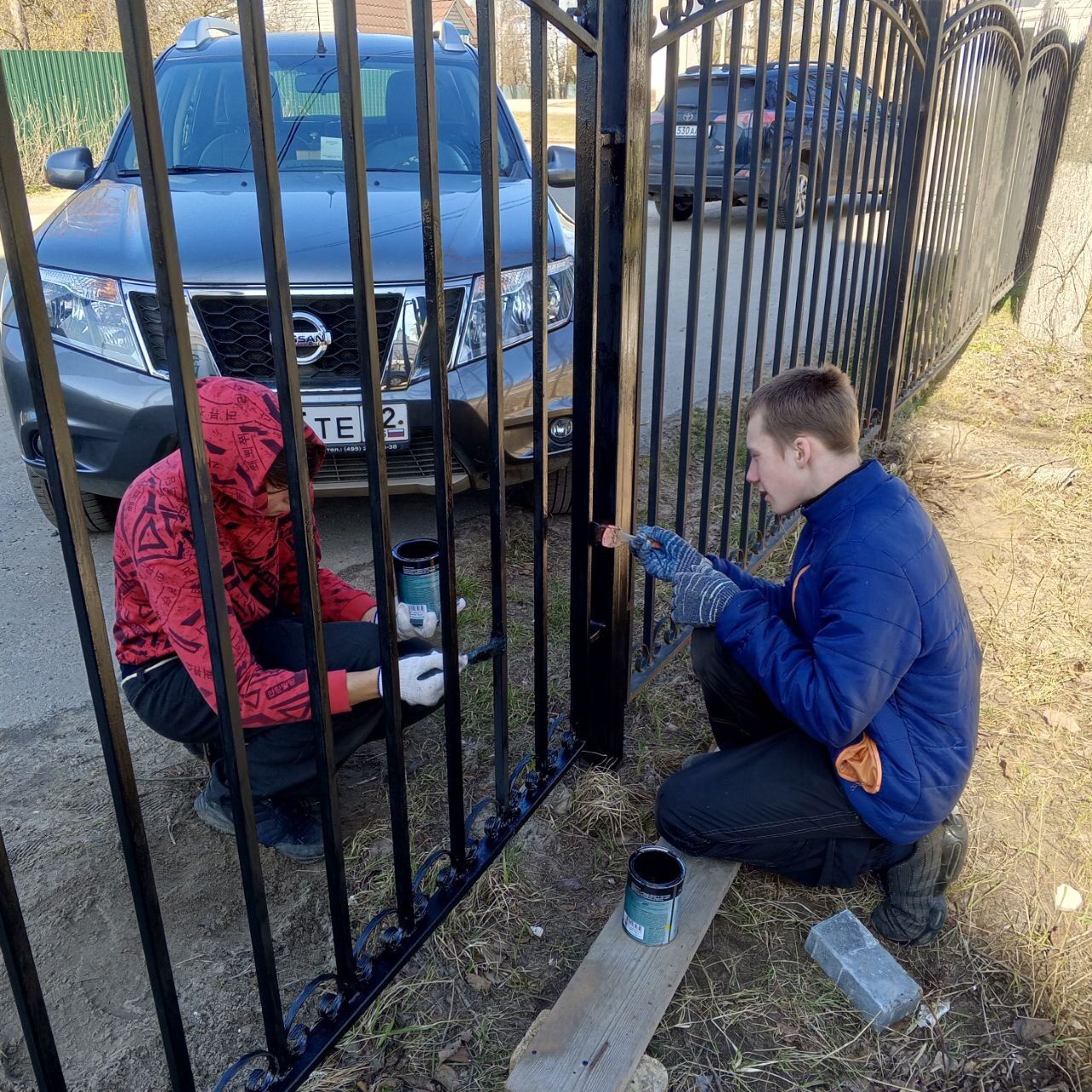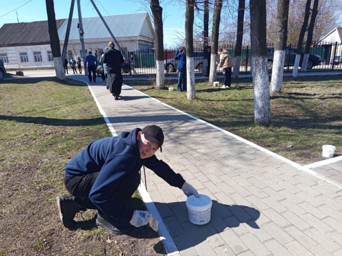 Школьники побелили бордюры и деревья в сквере, покрасили ограждения, убрали мусор с дорожек.