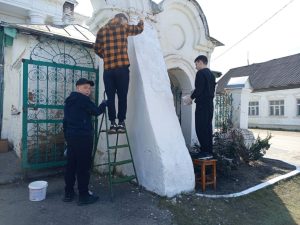 14 апреля, в преддверии Светлой Пасхи, волонтёры отряда «Открытые сердца» Тумской школы № 46 из 8 «а» класса провели субботник на территории у Троицкого храма.