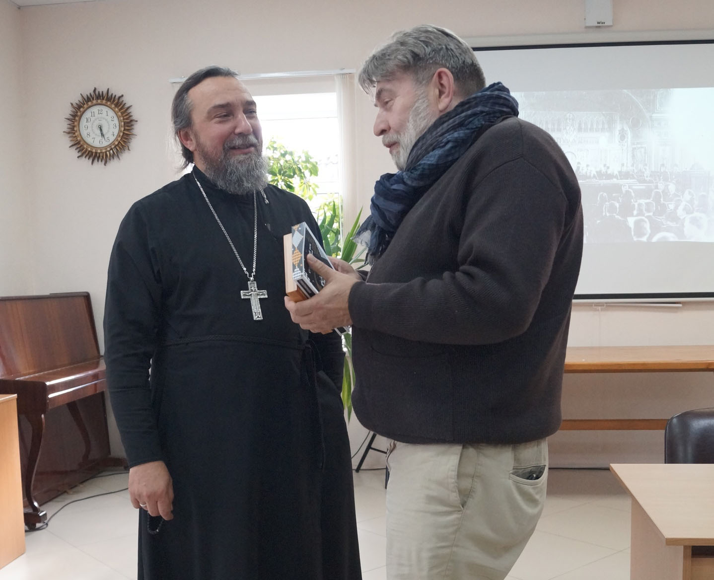 Перед началом лекции под названием «Церковь и власть накануне революции 1917-го» настоятель тумского храма Пресвятой Троицы иерей Михаил Митрохин представил гостя, а также еще одного из организаторов встречи Владимира Ковшова, профессионального историка, в 90-х годах директора одной из московских школ, учеником которой был Федор Гайда.