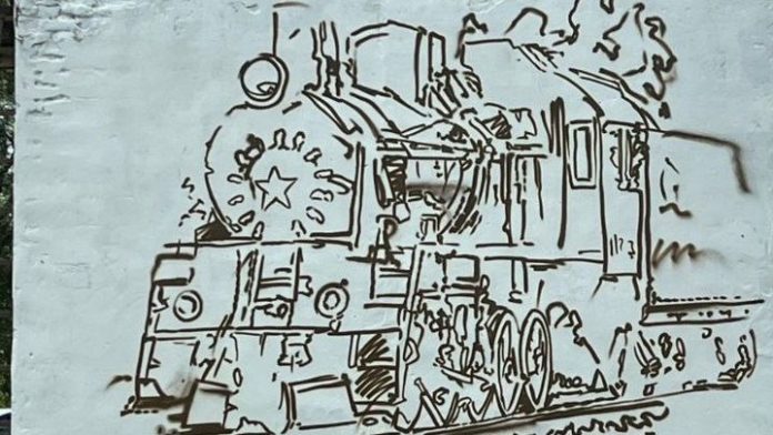 В поселке Тума Клепиковского района приступили к созданию мурала (рисунка на стене) в память об узкоколейной железной дороге, проходившей через населенный пункт в прошлом столетии.