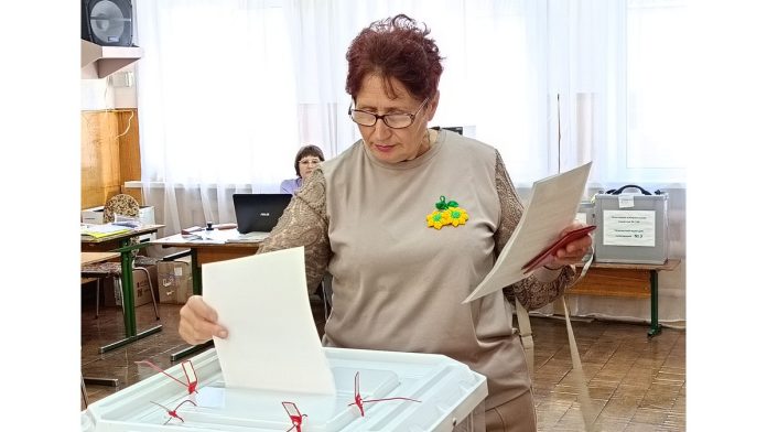 Светлана Косарева, активист центра общения старшего поколения, проголосовала на избирательном участке № 154.