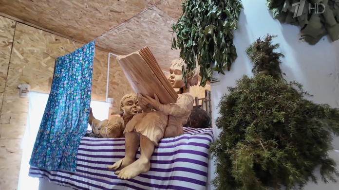 Далее зрители передачи увидели репортаж о доме-музее тумского сказителя «Были-небыли». Его основатель Алексей Гушан рассказал об экспонатах, представленных здесь. Представлены в музее артефакты, инструменты тумских плотников, резчиков и многое другое.