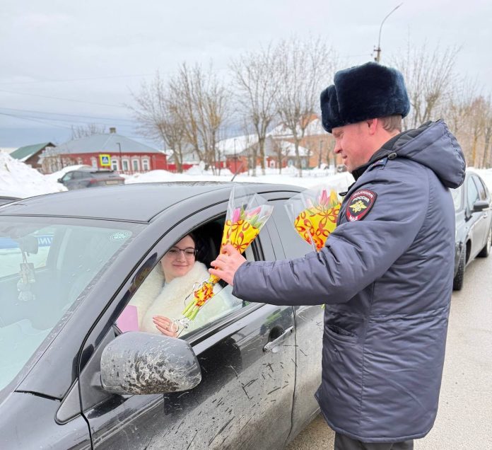 Сотрудники Госавтоинспекции 8 марта поздравили автолюбительниц с праздником, пожелали здоровья, успехов.